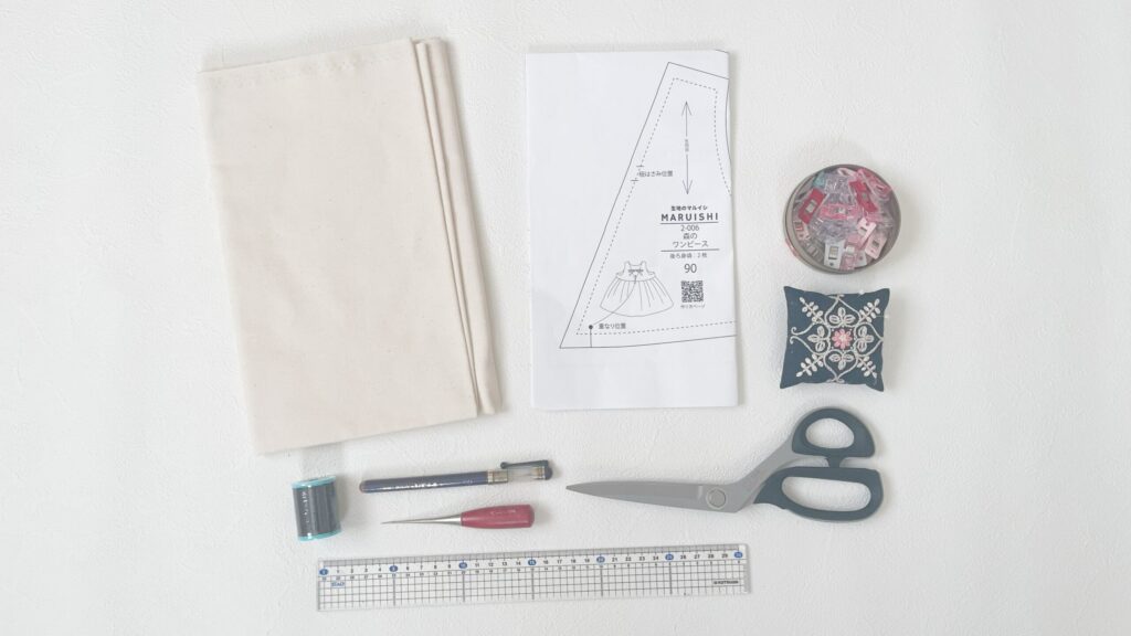 まずは型紙の用意をします。下のリンクから購入できますよ!縫い代付きなので、簡単に生地を裁断することができますよ。